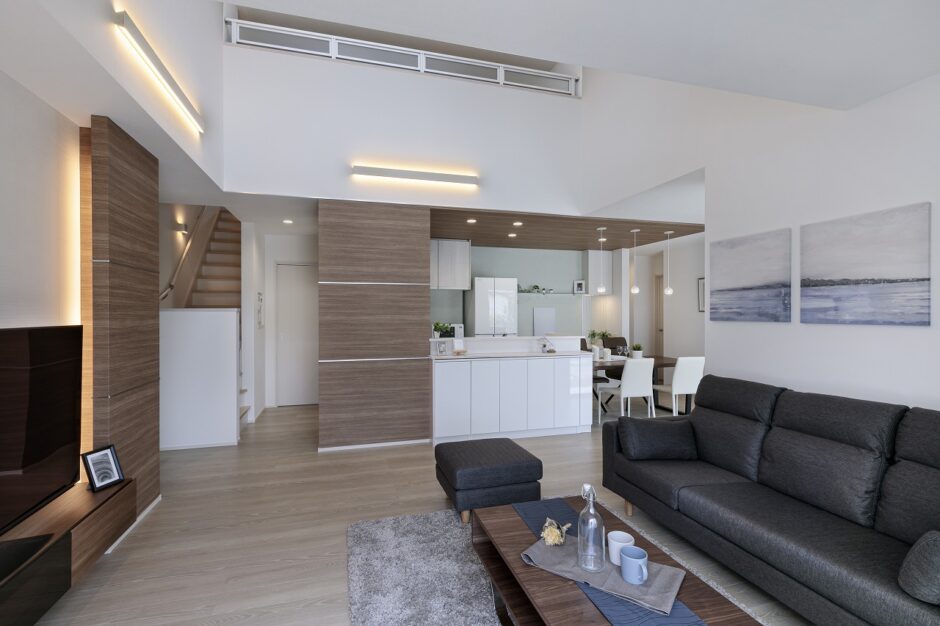 開放的なLDK。吹き抜けの窓から明るく爽やかな光を取込みます。