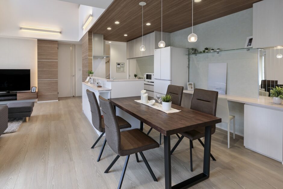 家族とのコミュニケーションが広がる回遊できるキッチンは背面収納もたっぷりです。