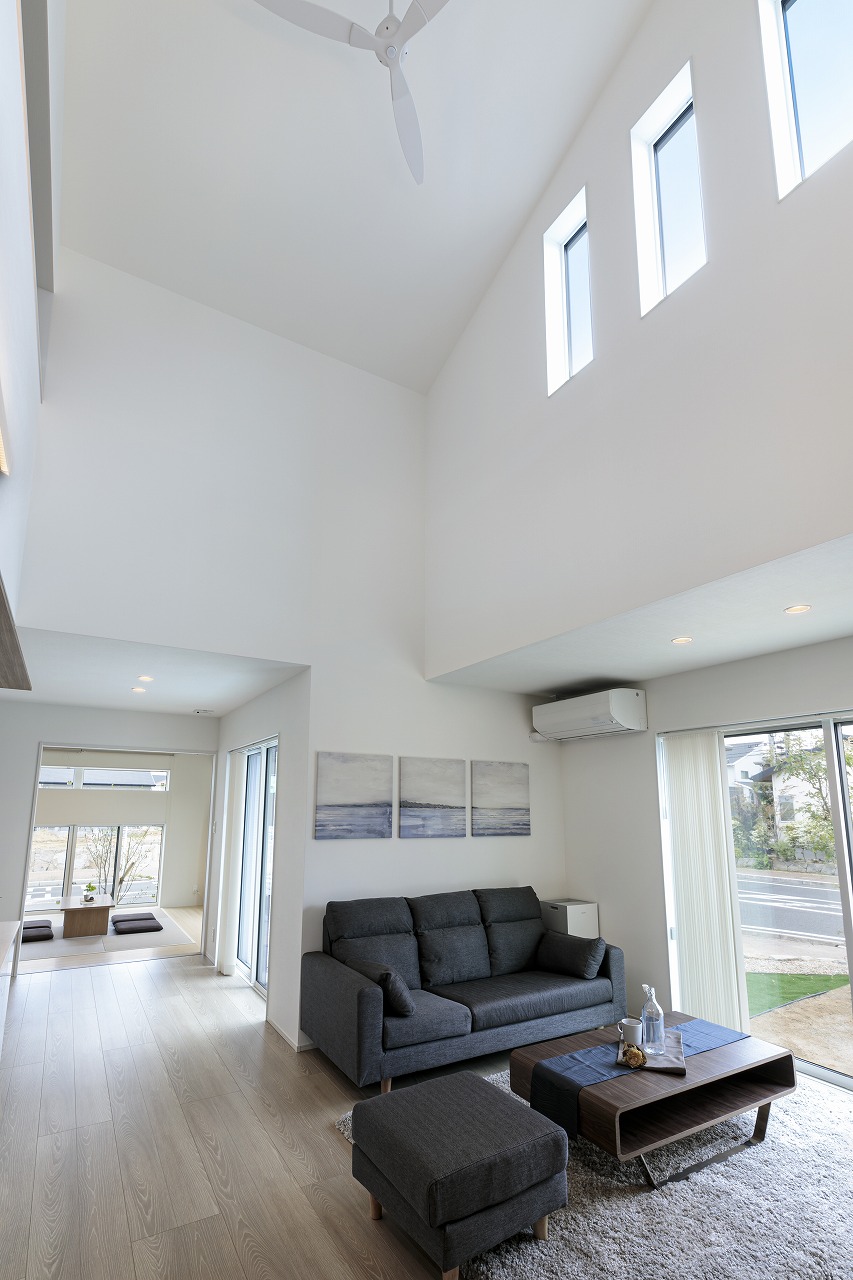 開放的なLDK。吹き抜けの窓から明るく爽やかな光を取込みます。