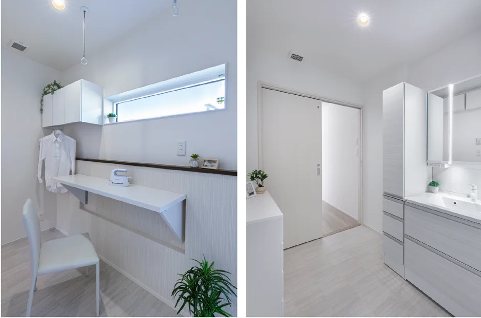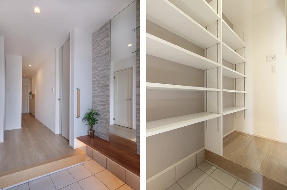 家族とのコミュニケーションが広がる回遊できるキッチンは背面収納もたっぷりです。