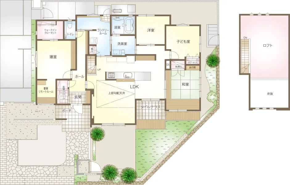 | 間取り等 | 敷地面積/314.78㎡(95.22坪) 延床面積/126.82㎡(38.36坪) |