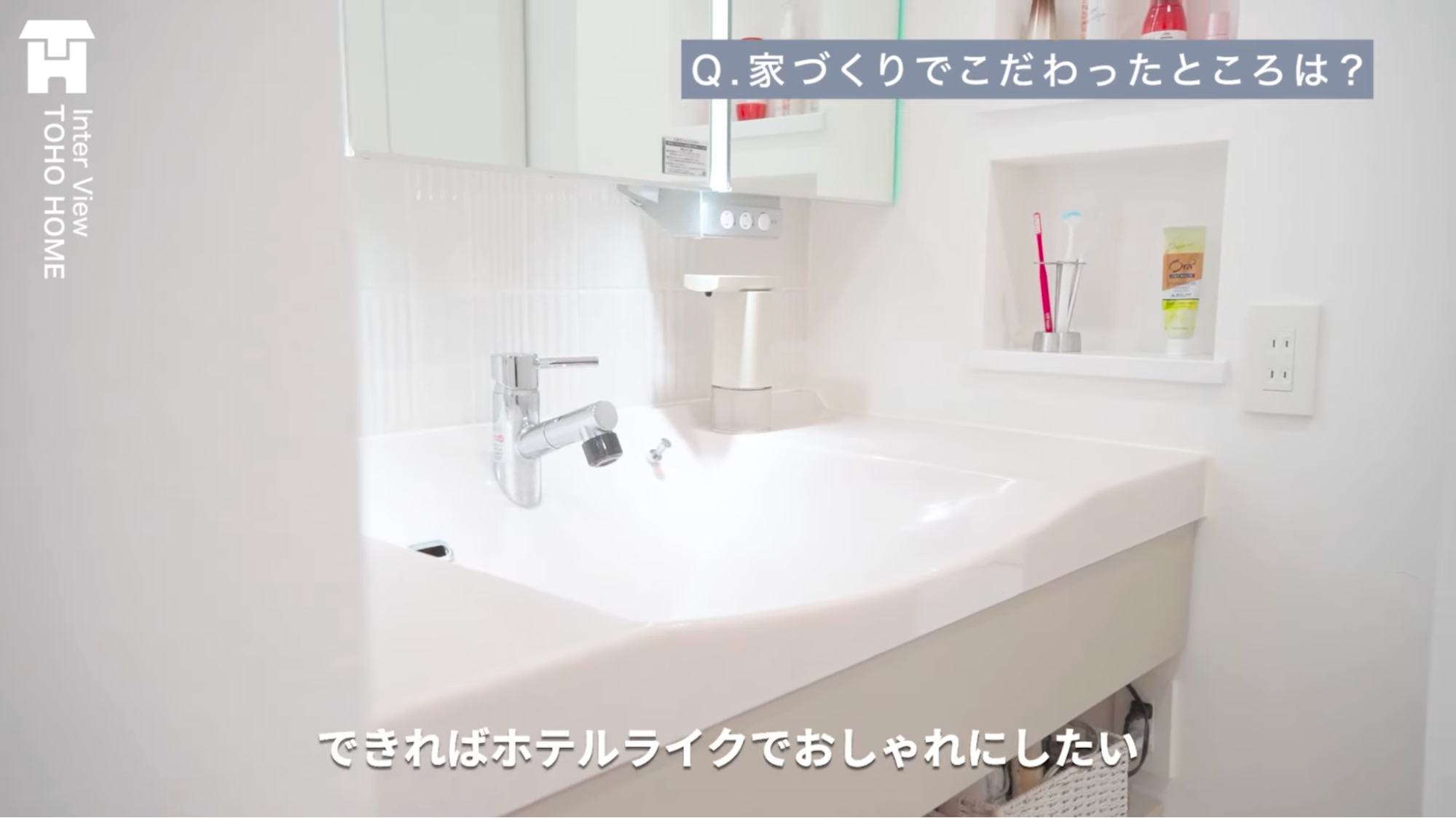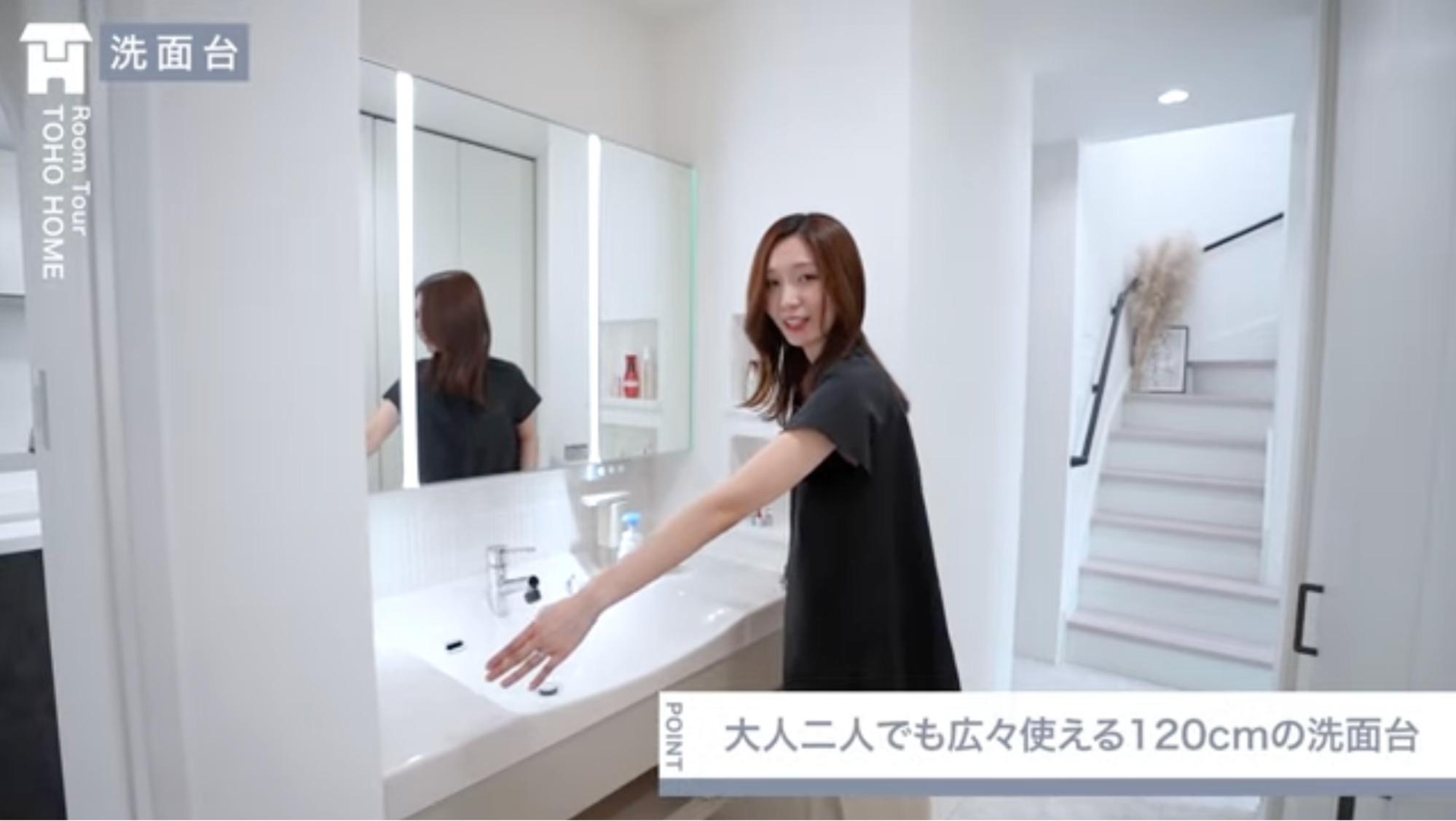 例えば東宝ホームさんの標準だと、洗面台の幅は90cmぐらいで大人1人が立てるくらいなんですけど、もうちょっと広い洗面台が良かったので広げたり。