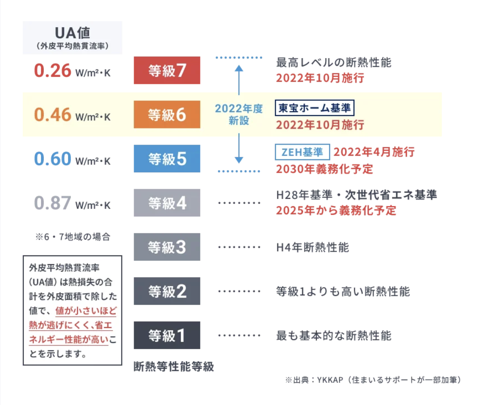 <地域6・7のUA値基準の目安>
