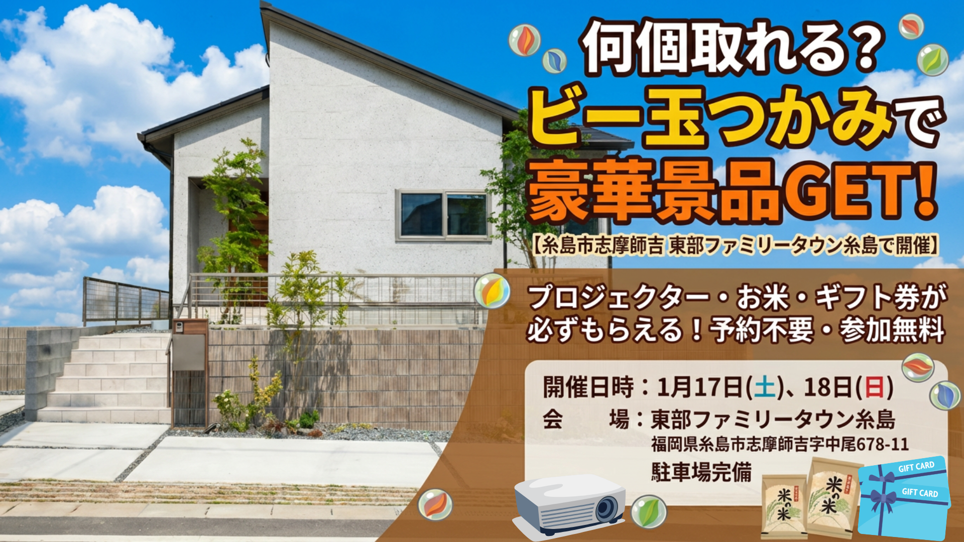 キャンペーンイベント何個取れる?ビー玉つかみで豪華景品GET!【糸島市志摩師吉 東部ファミリータウン糸島で開催】 |