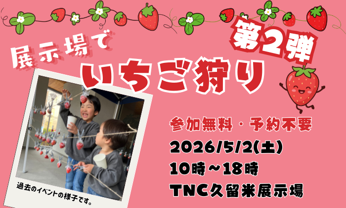 イベント【展示場でいちご狩り♪第2弾】5/2(土)限定in久留米展示場 |