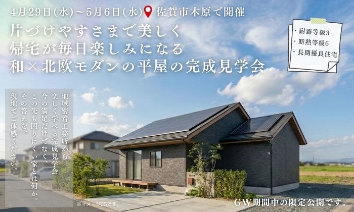 完成・構造見学会イベント【帰宅が楽しみになる 和×北欧モダンの平屋見学会】in佐賀市木原3丁目 |