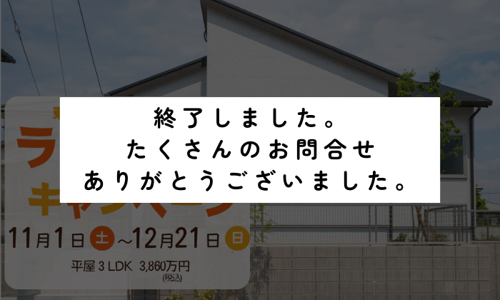 キャンペーン(終了)【11/1(土)~12/21(日)】東部ファミリータウン糸島 ラスト1棟キャンペーン|マックカード500円分プレゼント!|抽選で家電プレゼント!期間11/1(土)~12/21(日) 会場東部ファミリータウン糸島 7号地 |