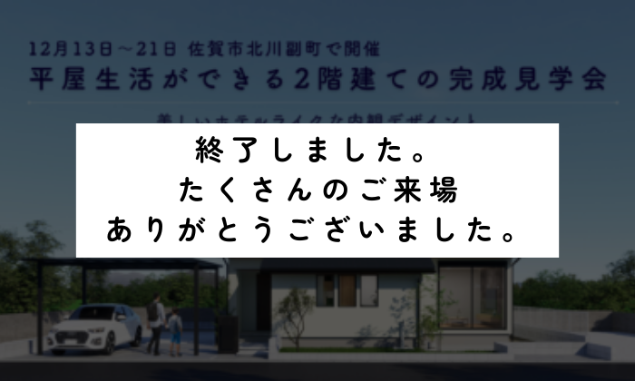 完成・構造見学会(終了)佐賀市北川副町 半分平屋の完成見学会~「30年後も、この家でよかった」と思える間取り。 将来は1階だけで暮らす「半分平屋」× ホテルライクな家~期間12月13日(土)~12月21日(日) 会場佐賀市北川副町(詳細な住所はご予約後にお伝えします) |