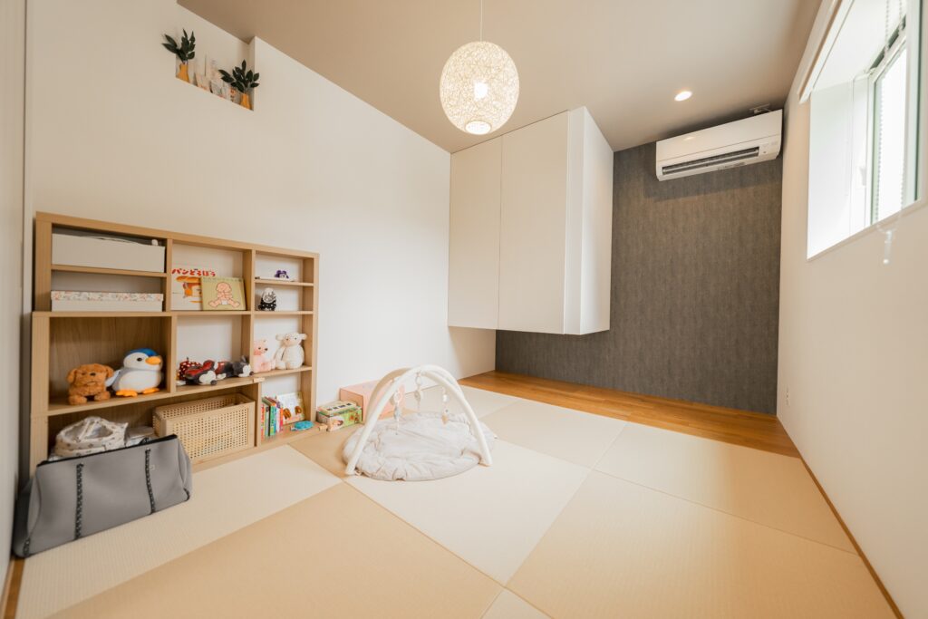 さらに畳コーナーには吊押入れを設置、小さくても多用途な圧迫感のない”浮かせる”収納です。
