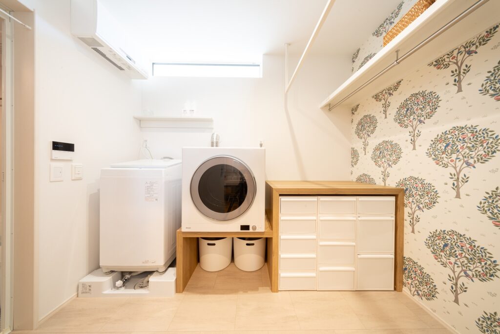 共働きのご夫婦必見。パワフルなガス乾燥機「乾太くん」を導入し、洗濯にかかる時間を大幅に短縮。さらに、「脱衣所カウンター」を備えたランドリースペースは、室内干しも可能な広々設計。「洗う・乾かす・しまう」がスムーズに完結し、毎日の家事ストレスから解放されます。