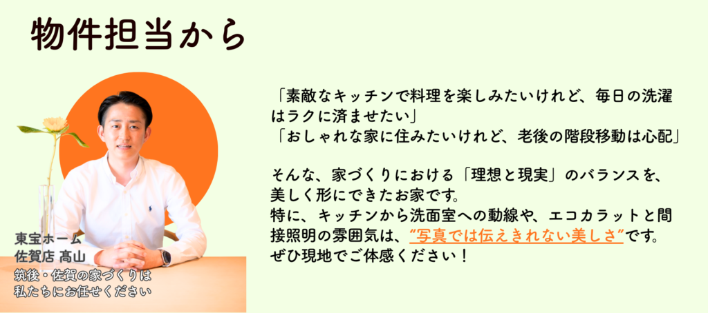 今回ご案内するのは、佐賀市北川副町に完成した、性能と美しさを極めたお住まい。「今」の子育てのしやすさと、「40年後」の夫婦ふたり暮らしの快適さ。その両方を叶えた、賢い間取りの正解がここにあります。