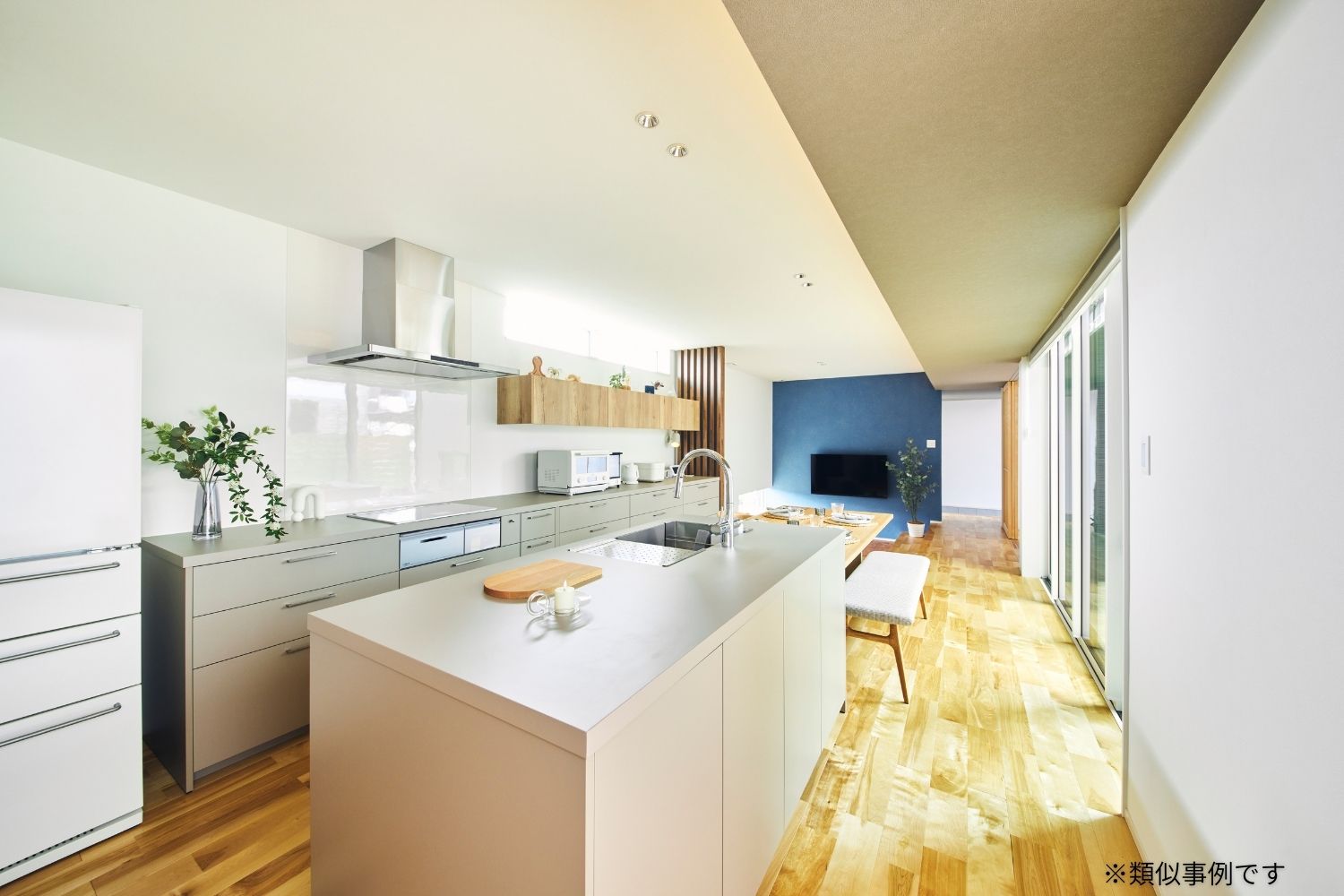Ⅱ型キッチン:コンロとシンクが分かれているタイプのキッチンです。複数人で作業したり、省スペースでキッチンとダイニングテーブルを横並びに配置したい場合に採用することが多いタイプです。