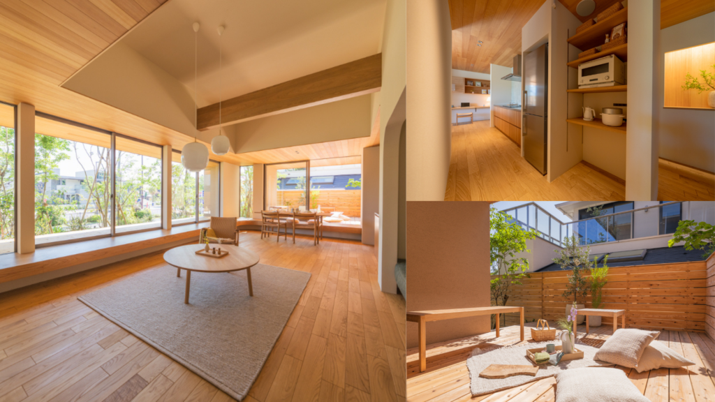 ①一年中快適な住まい:外張り断熱・高気密仕様で、夏涼しく冬暖かい家。結露を防ぐ通気システムも搭載で快適!