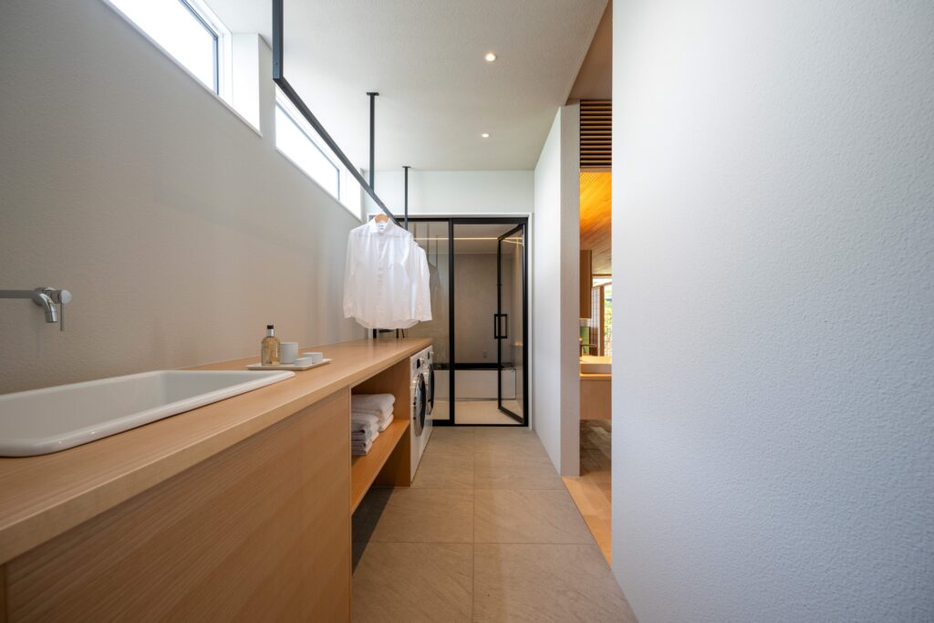 ④ 洗う・干す・畳む・収納するを完結させたランドリー兼脱衣室