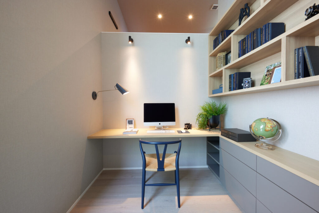 寝室横の書斎は、家族の気配を感じながらも集中できる“自分時間”の場所です。