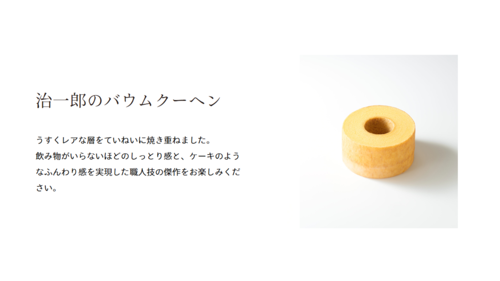 しっとり、ずっしり。24層に重ねられた職人技が光る、治一郎の名品バウムクーヘン。