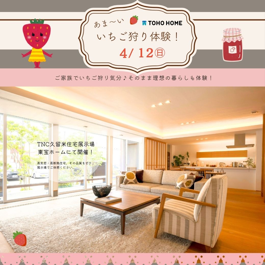 東宝ホーム 福岡・佐賀イベント情報イベント【TNC久留米展示場】4/12㊐限定 いちご狩り体験イベント🍓