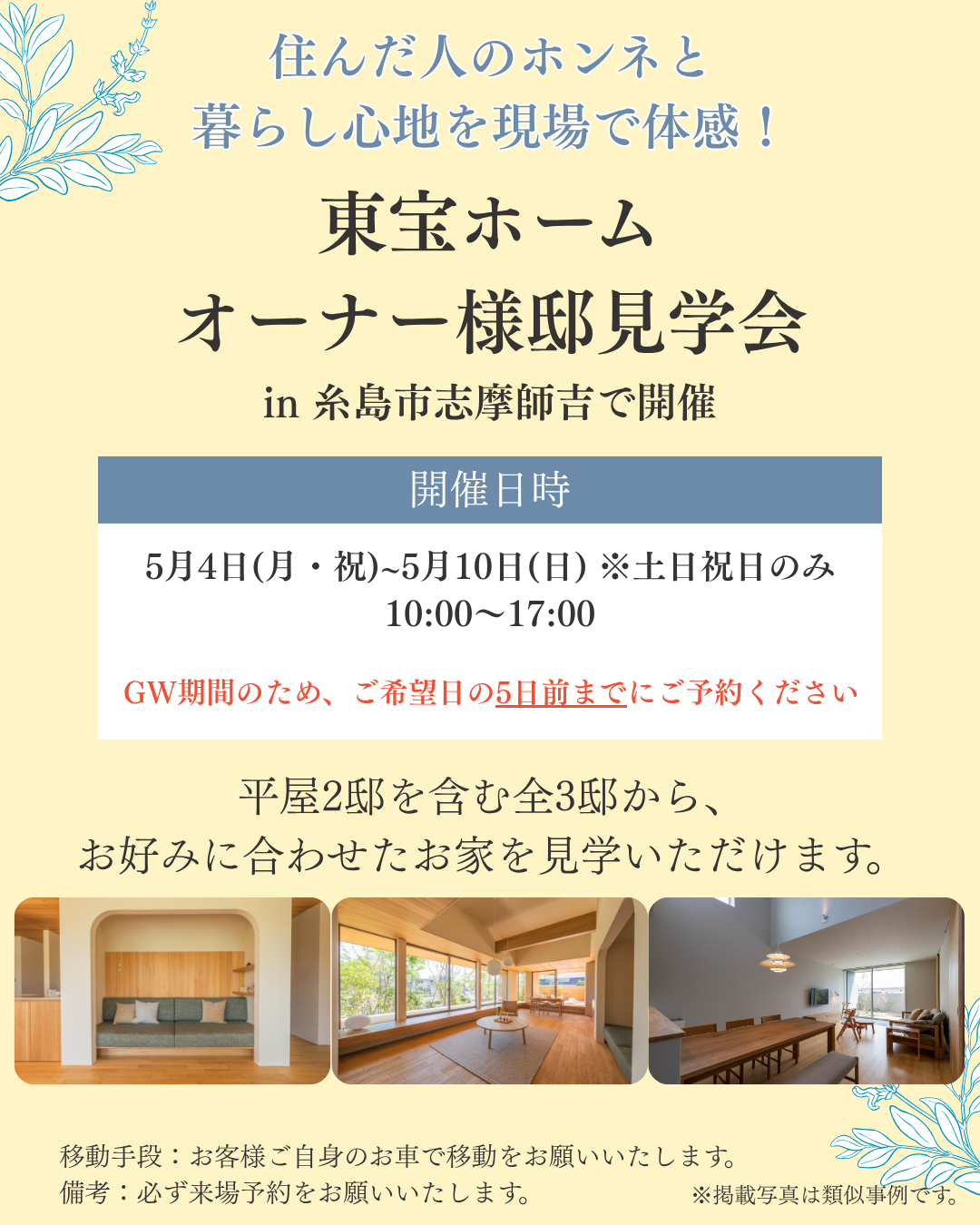 東宝ホーム 福岡・佐賀イベント情報完成・構造見学会イベント【糸島で開催】オーナー様邸見学会