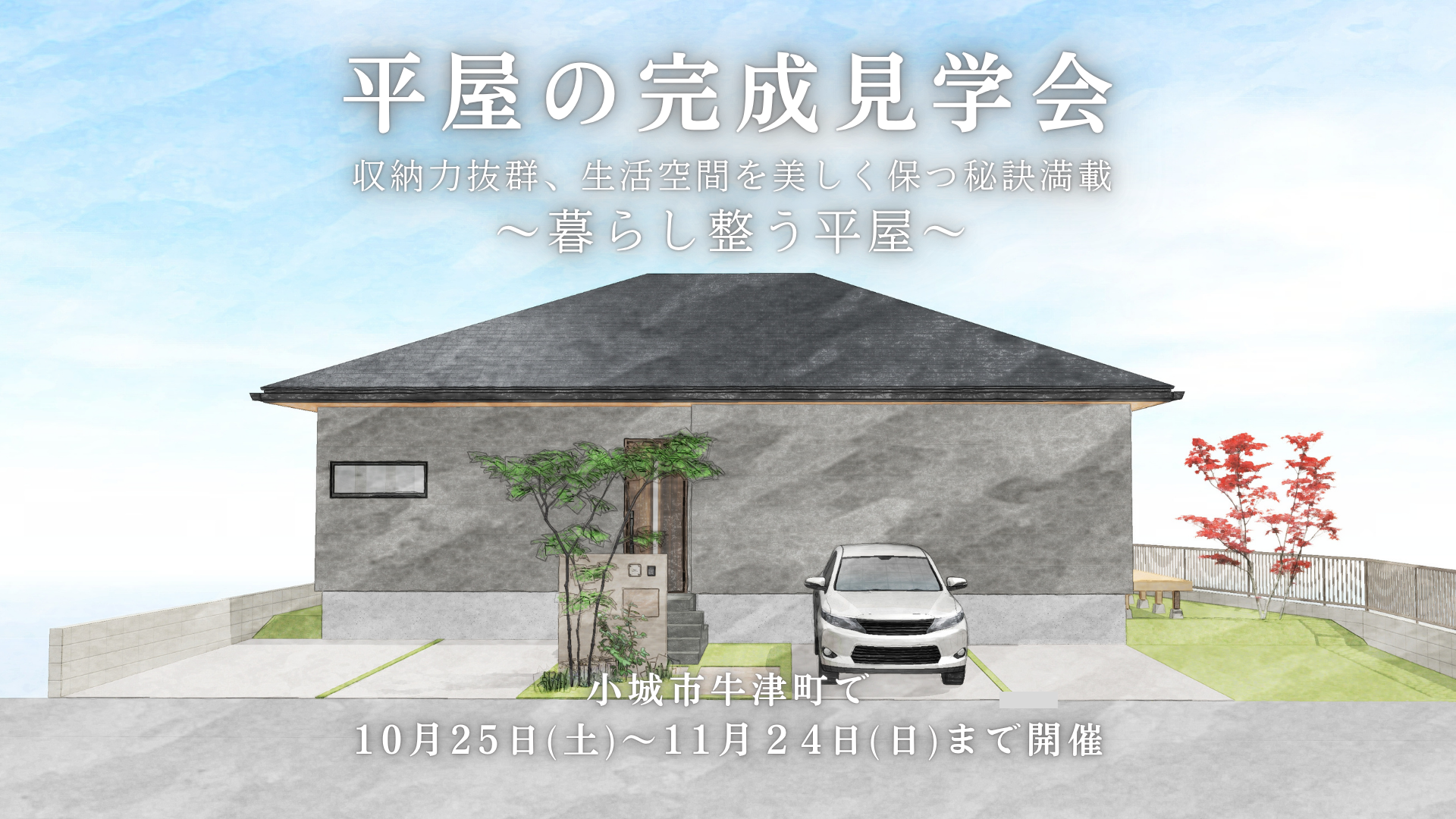 完成・構造見学会イベント佐賀のママに見てほしい。暮らしが整う平屋の完成見学会|in 小城市牛津町|収納力抜群、生活空間を美しく保つ秘訣満載期間10月25日(土)〜11月24日(日) 会場佐賀県小城市牛津町※場所詳細は来場お問合せ後にお伝えいたします。 |