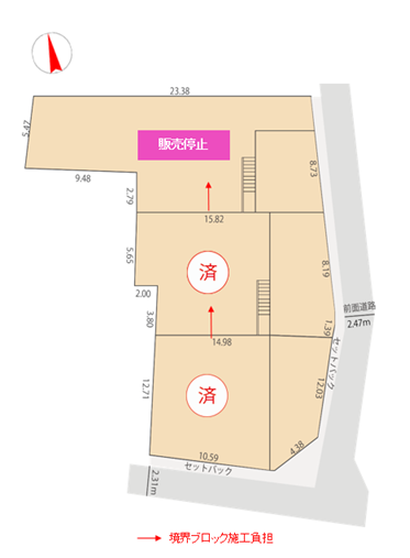 【物件概要】●物件名称/サニーガーデン久留米北野町高良●所在地/福岡県久留米市北野町高良字下開334番5他●総区画数/4区画●取引形態/東宝ホーム株式会社●土地の権利形態/所有権●交通/西鉄甘木線「北野」駅 徒歩約9分 九州自動車道久留米インター 車で約11分●開発許可番号/対象外●開発面積/-●造成工事/完成済●地目/宅地●用途地域/第一種低層住居専用地域●建ぺい率・容積率/50%・80%●道路の幅員・私道負担/公道 幅員/西側 約5.5m・東側 約5.0m●設備等の概要/電気(九州電力)、個別プロパン、公営上下水道、雨水(側溝)●学校区/弓削小学校・北野中学校●その他費用/水道加入金(20mm)110,000円(税込)・検査手数料4,000円・下水道受益者負担金171円/㎡●備考/地元自治会に加入することが前提となります。尚、区費は未定です。