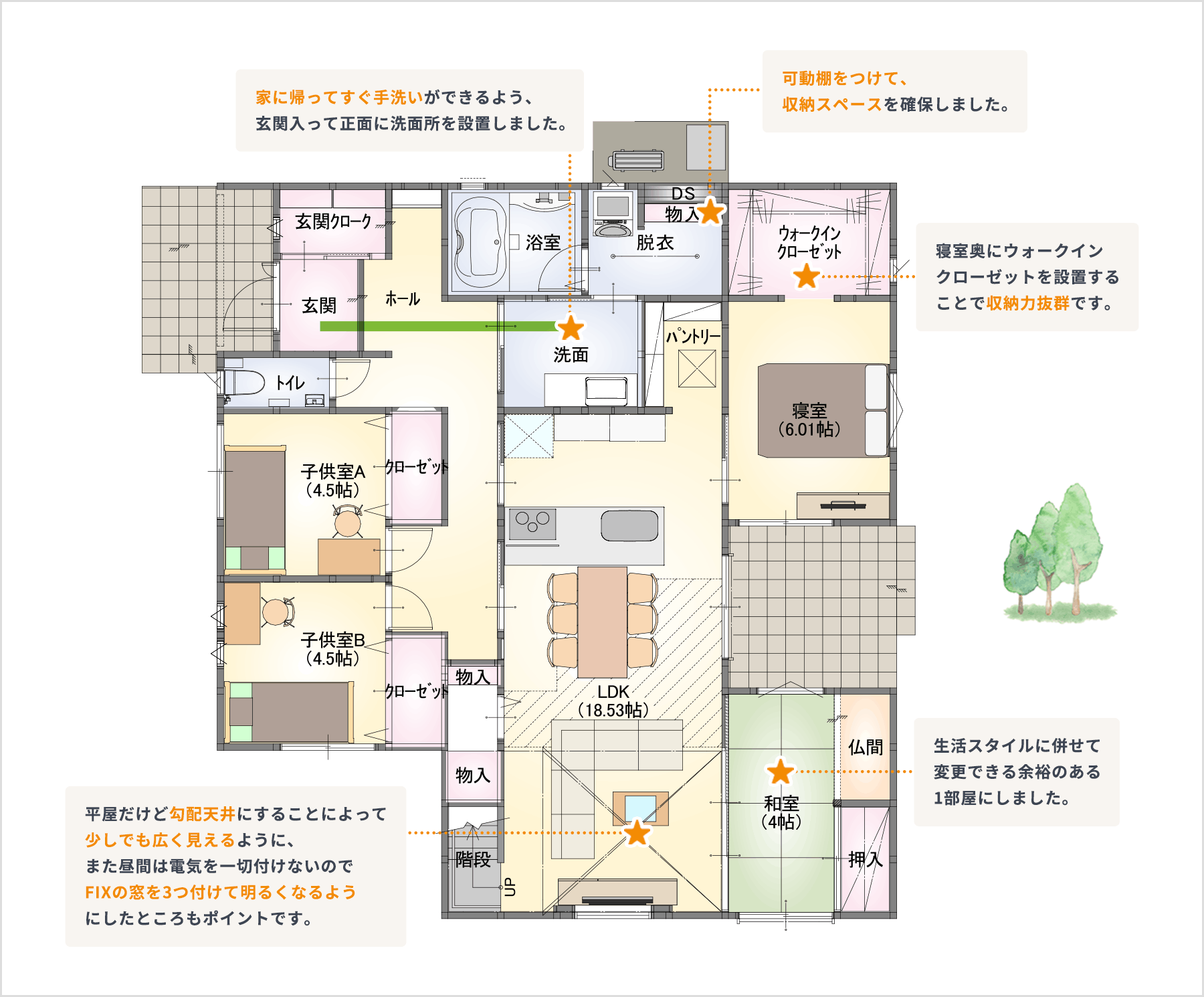 PLAN 02 子育て世代が暮らすナチュラルテイストの平屋