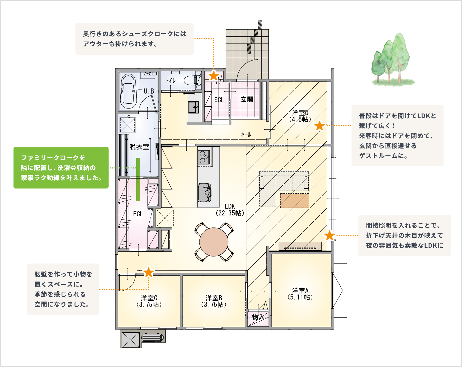「家の性能はひとつの決め手。家に踏み入れた時の空気感が何か違う。静かだし無垢の木の質感も素敵だなと思いました。そして何より担当営業の人柄がよく、何でも話しやすいし誠実に対応してくださるのでお任せしようと決断できました」とTさん。こだわりをすぐに理解し、プラスアルファの提案があるので打ち合わせは毎回とても楽しかったそう。