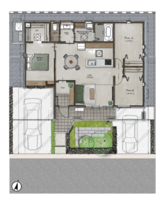 リビングを中心とした生活動線。視線が気にならないプライベートガーデンは家族だんらんの空間としても利用できます。