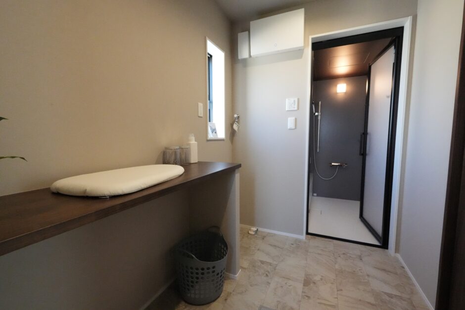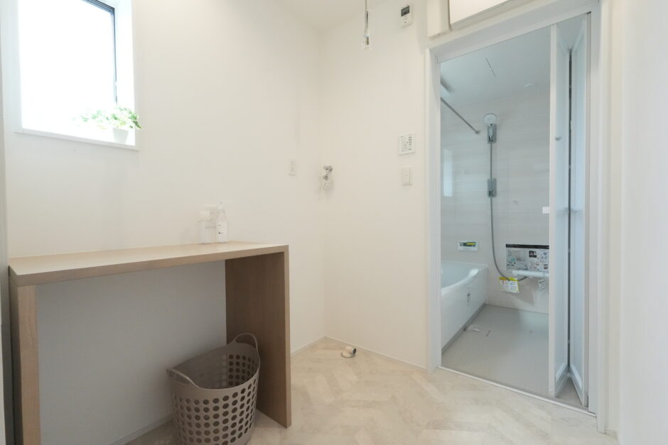 【32号地/平屋】使い勝手の良いカウンター付き脱衣スペース