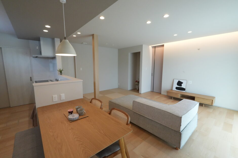 ・下り天井+間接照明でメリハリをつけたLDK