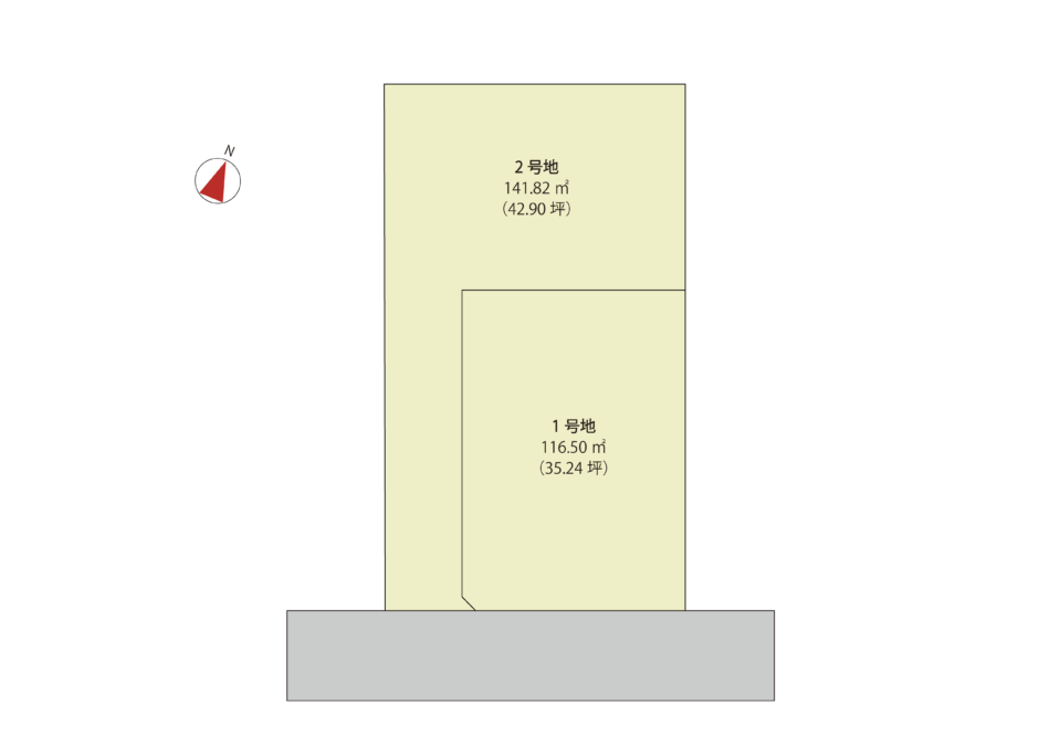 | 備考 | ※2号地に関しては上下水、雨水引込み工事を事前に施工します。 ※本物件は分筆登記前の物件である為、分筆登記後面積に増減する可能性があります。 |