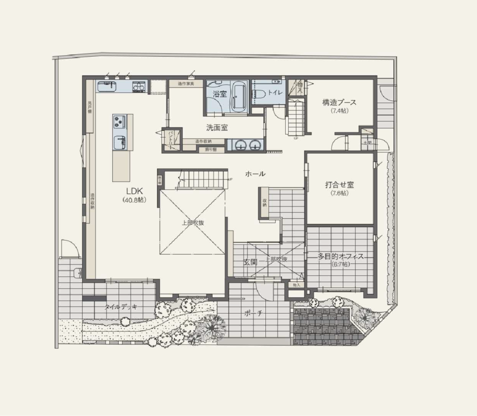 住まいのどこにいても家族を感じることのできる設計を創出。