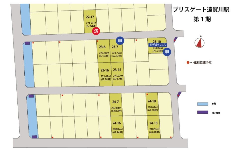 | 68.66坪 | 電柱・支線あり・モデルハウス建築予定のため売止 | ||