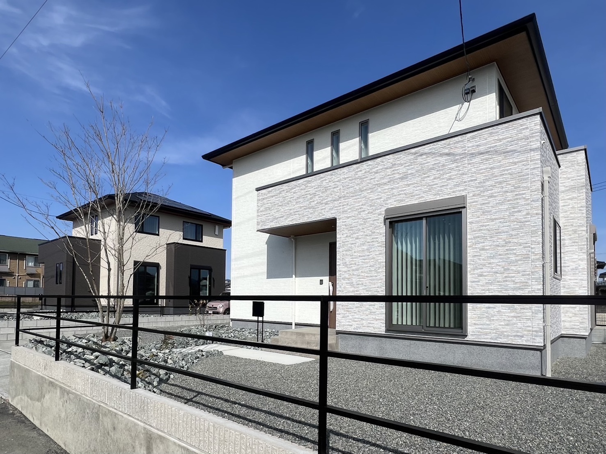 こちらのモデルハウスは明るいナチュラルカラーを基調としています。お隣りに立つ1号地(写真奥)が落ち着きのあるシックなデザインなのに対して、7号地はモダンで爽やかな雰囲気。