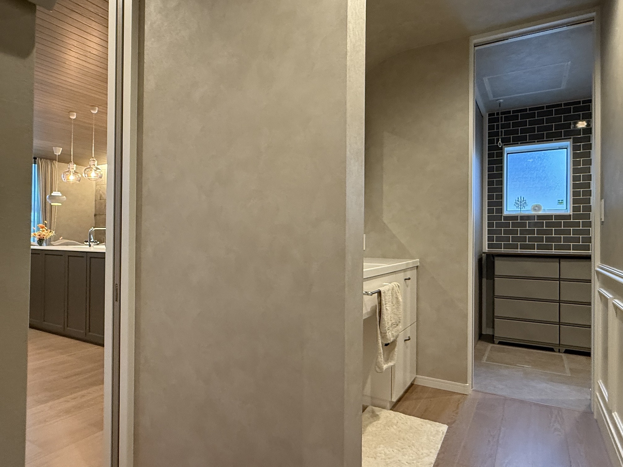 キッチン、玄関、脱衣室横にそれぞれ大型の収納が設けられているのもポイントです。これによって、使った物をその場で片付けることができ、特に手間をかけなくとも“散らからない家”を実現できます。