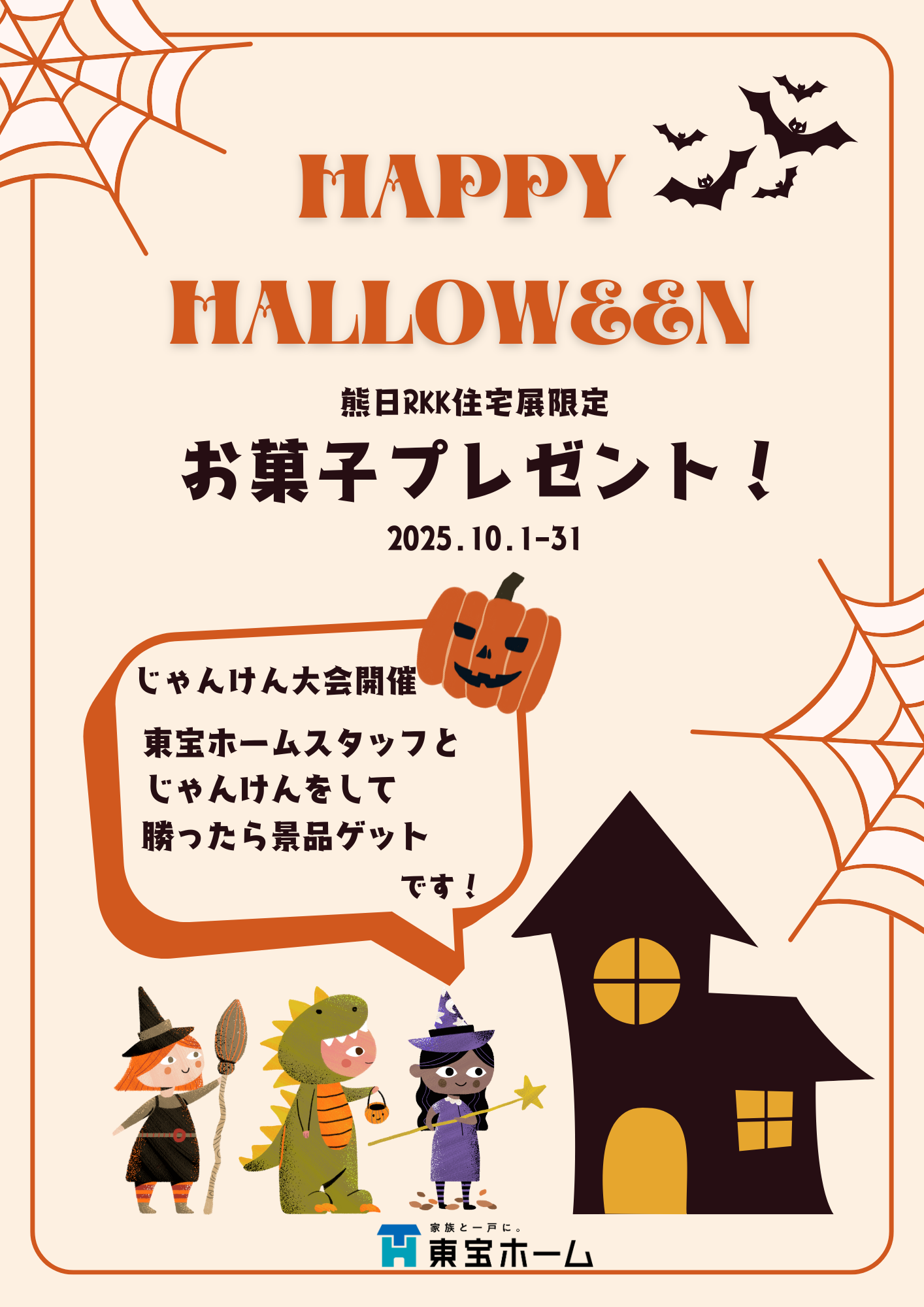 展示場をご見学いただき、アンケートにお答えいただいた小学生以下のお子様に、ハロウィーンのお菓子をプレゼントいたします!