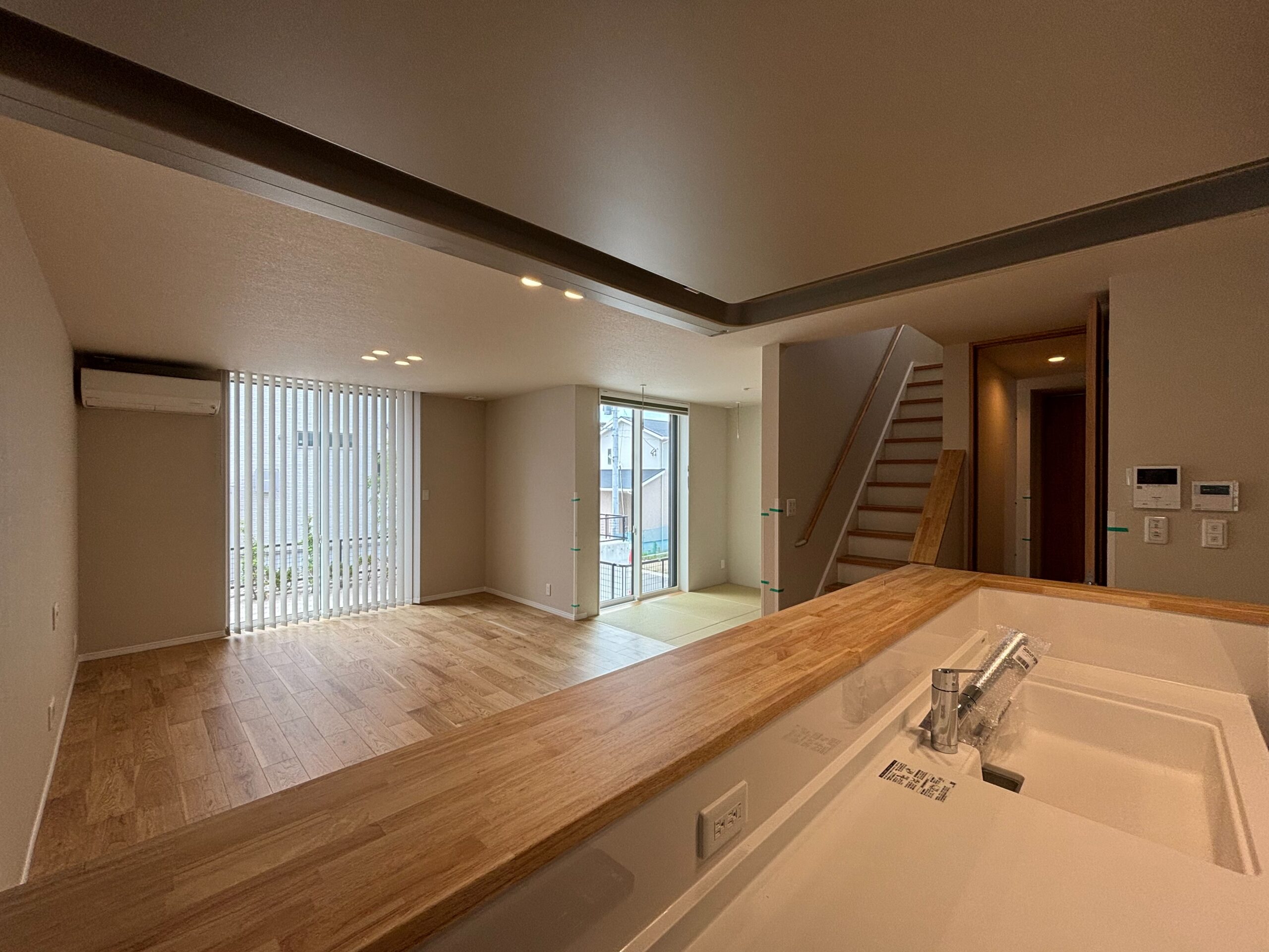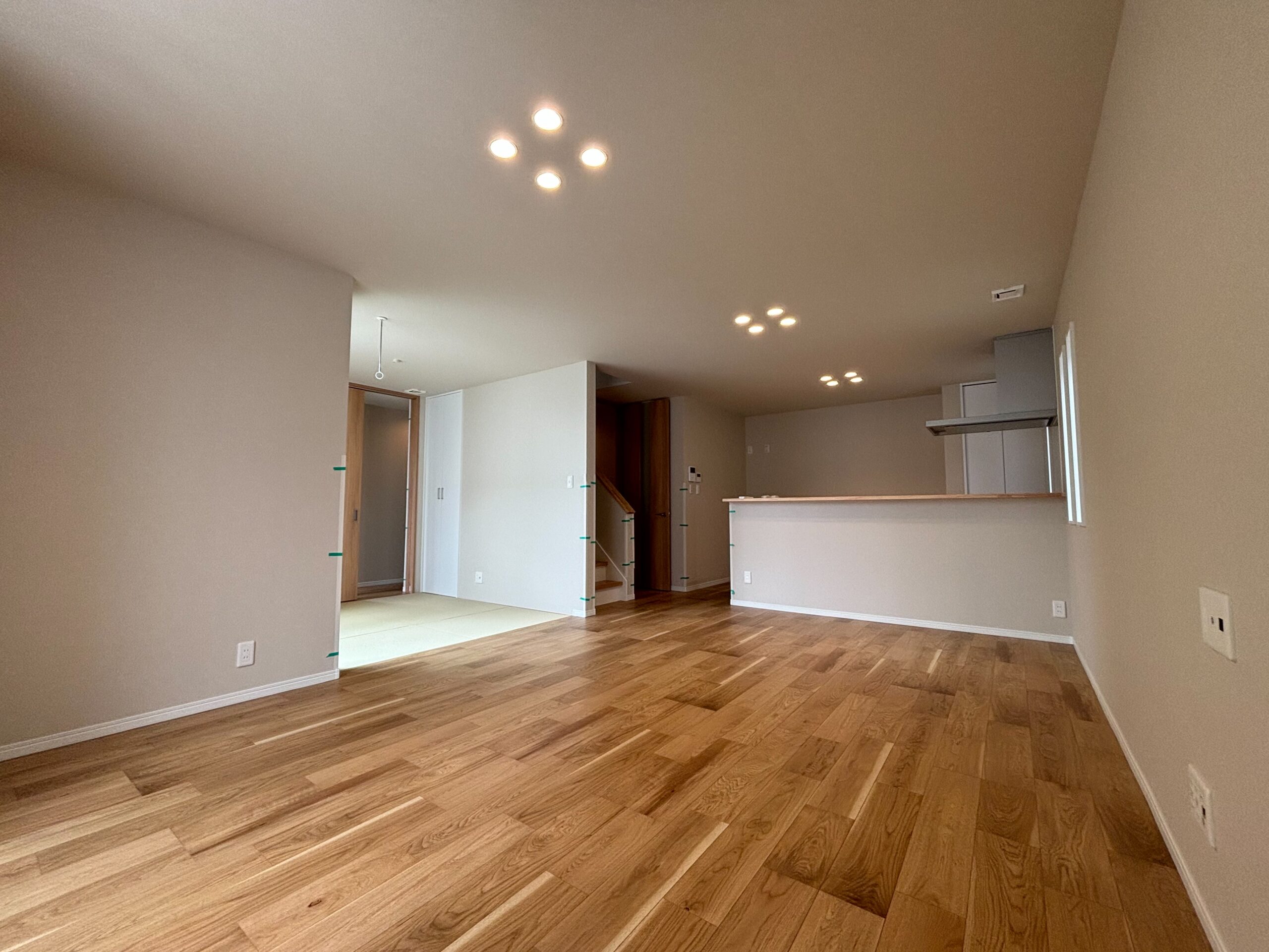 グレードが注文住宅と同じ!東宝ホームの分譲住宅の内装は注文住宅を建てるときと同じグレードで建てています。使い勝手の良いキッチン、窓には断熱性能を高めたトリプルガラスを採用。壁にはアクセントクロス、床には無垢床が使われたりと、使用している素材も注文住宅と同じ素材で細部までこだわっています。